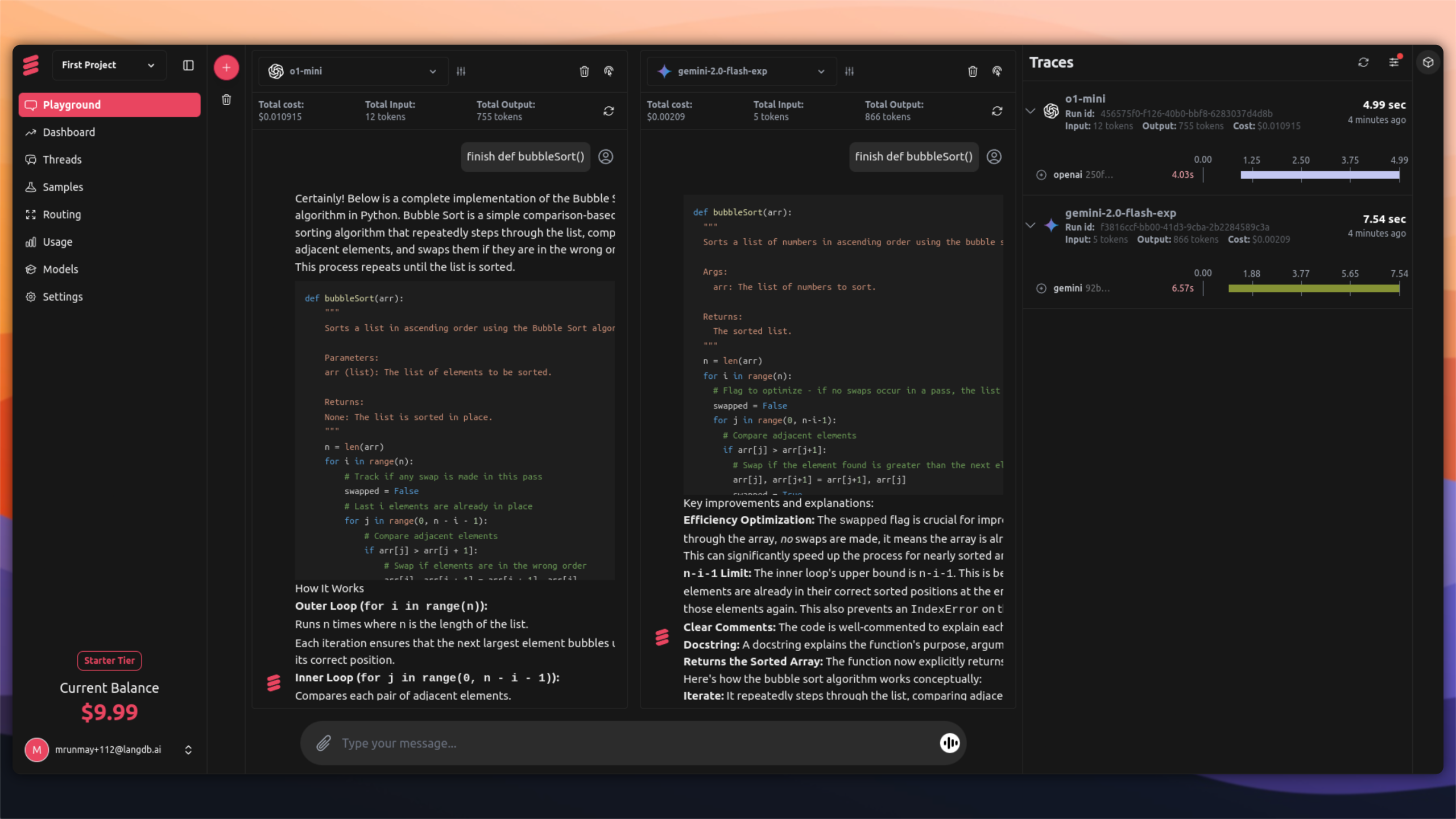 Test a chat window with two different models to see dynamic routing in action.