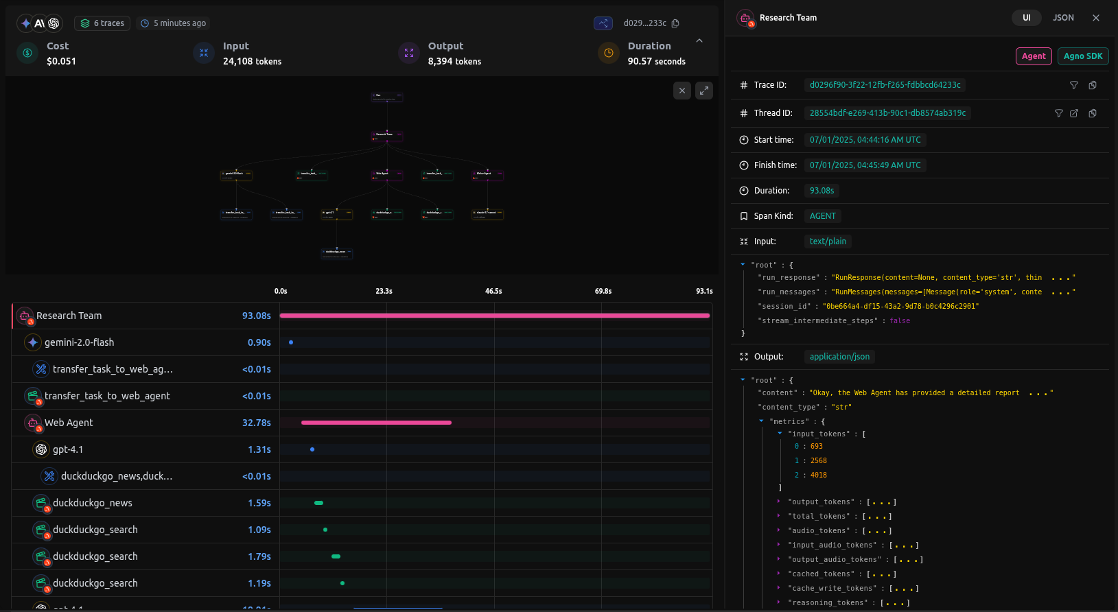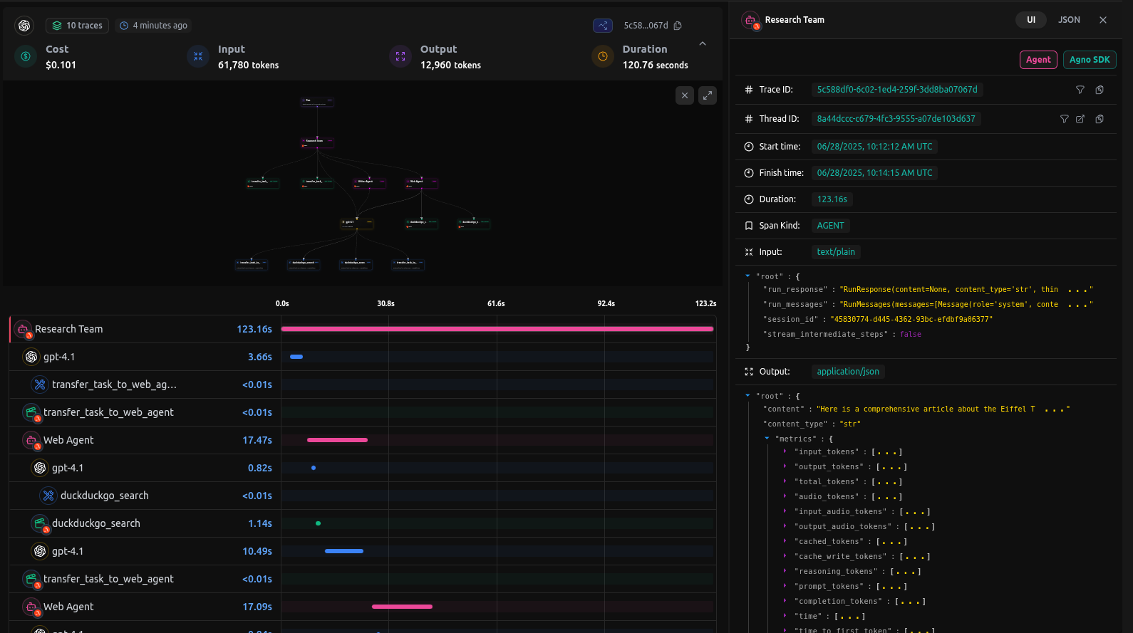 LangDB’s Agno integration provides end-to-end tracing for your Agno agent pipelines.