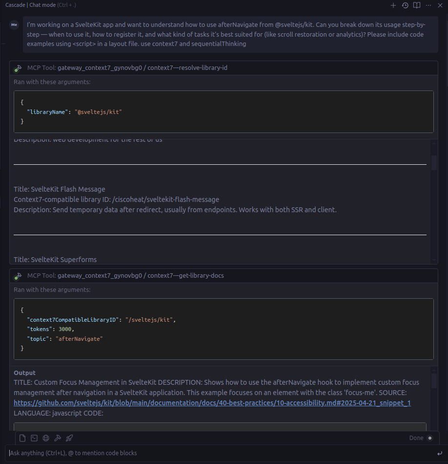 - Using Context7 to inject accurate, up-to-date code documentation inside your coding prompt.